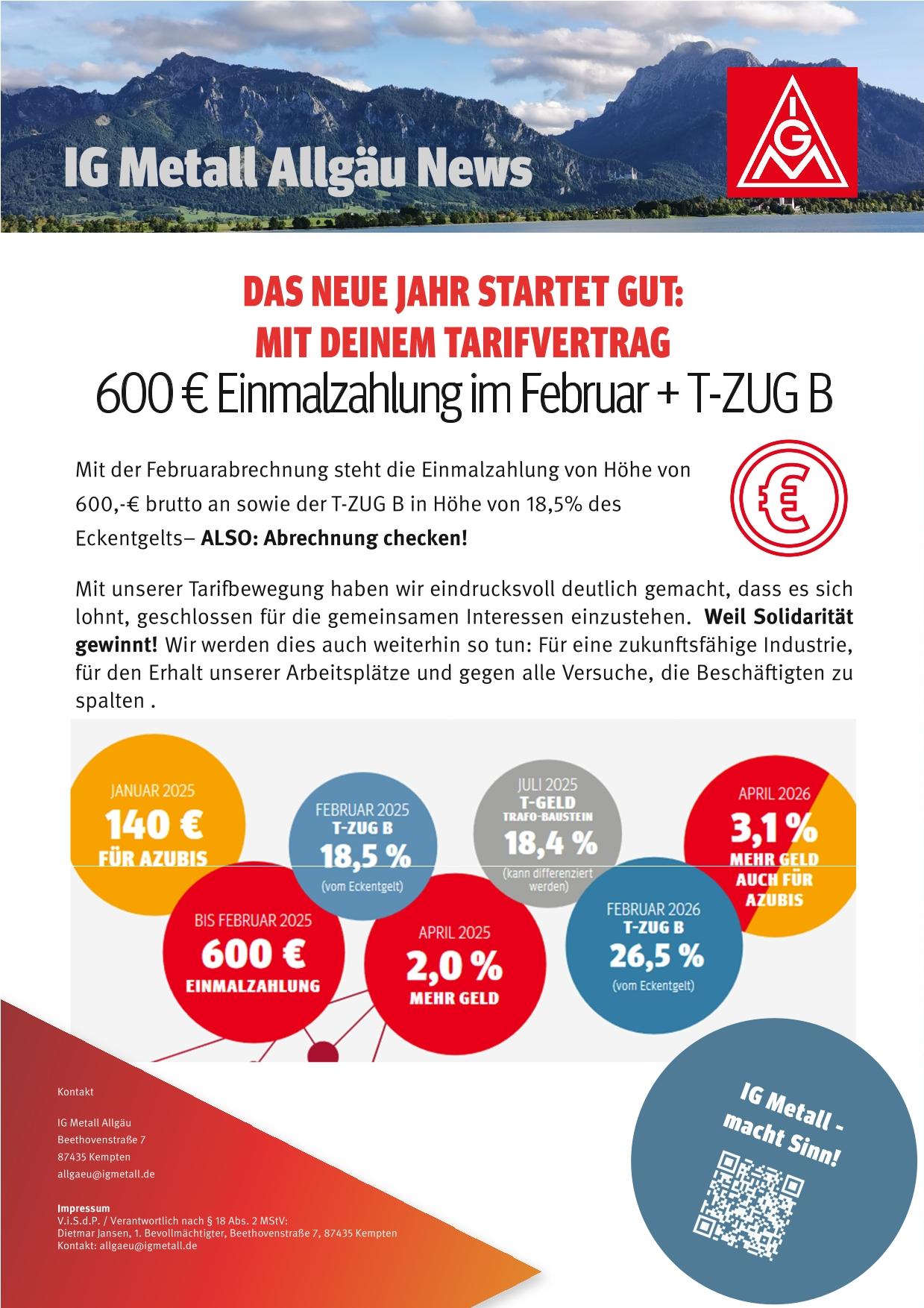 Mit der Februarabrechnung steht die Einmalzahlung in Höhe von 600,-€ brutto an, sowie der T-ZUG B in Höhe von 18,5% des Eckentgelts- ALSO: Abrechnung checken!