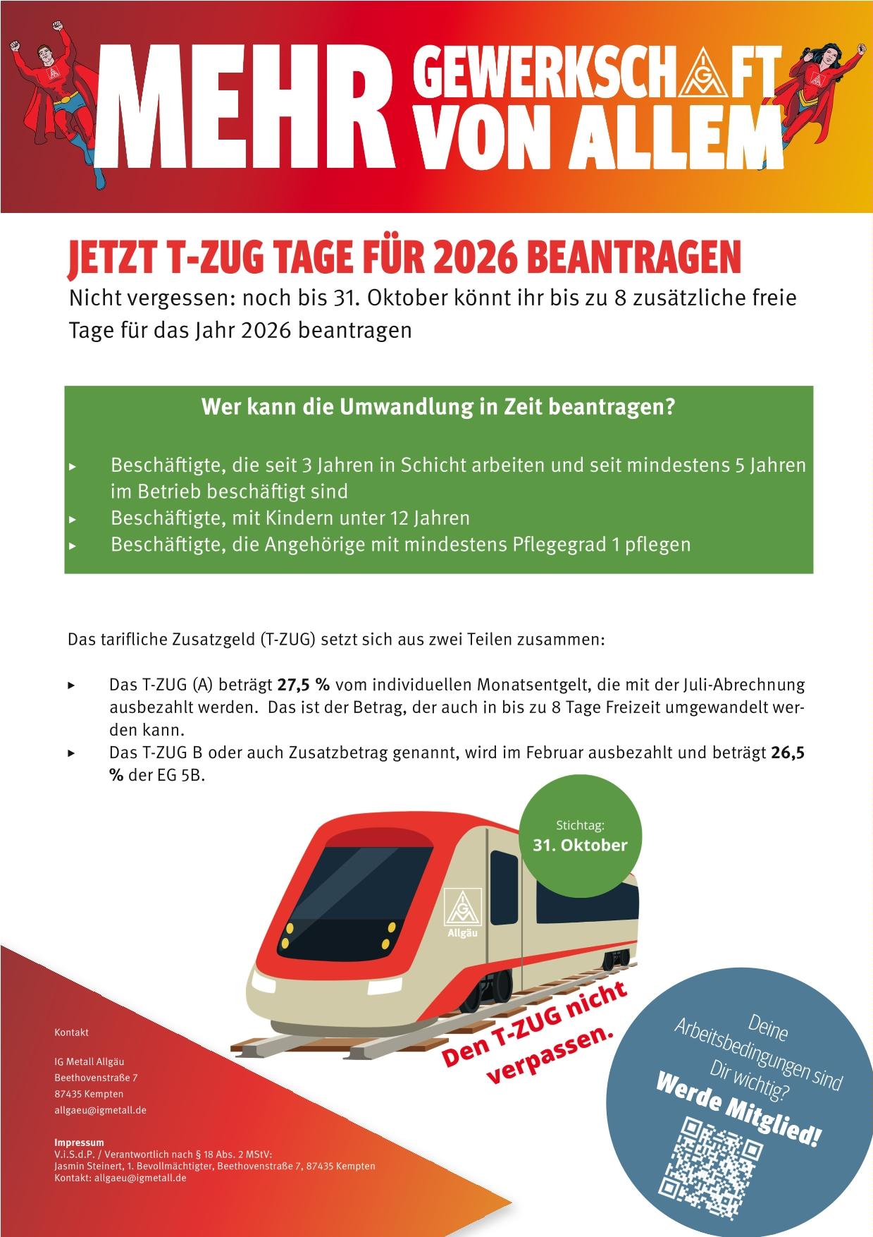 JETZT T-ZUG TAGE FÜR 2026 BEANTRAGEN
