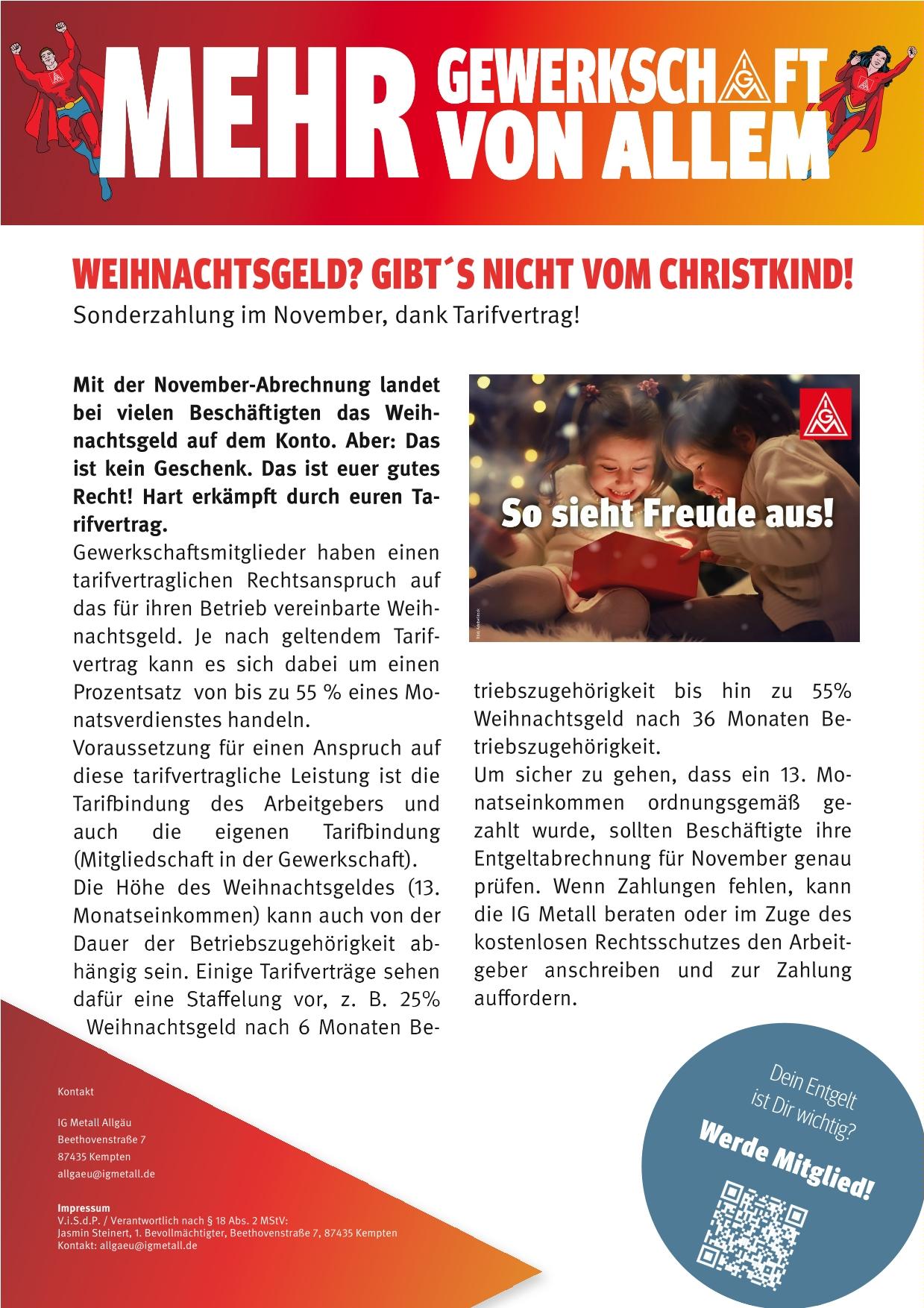 Mit der November-Abrechnung landet bei vielen Beschäftigten das Weihnachtsgeld auf dem Konto. Aber: Das ist kein Geschenk. Das ist euer gutes Recht! Hart erkämpft durch euren Tarifvertrag.